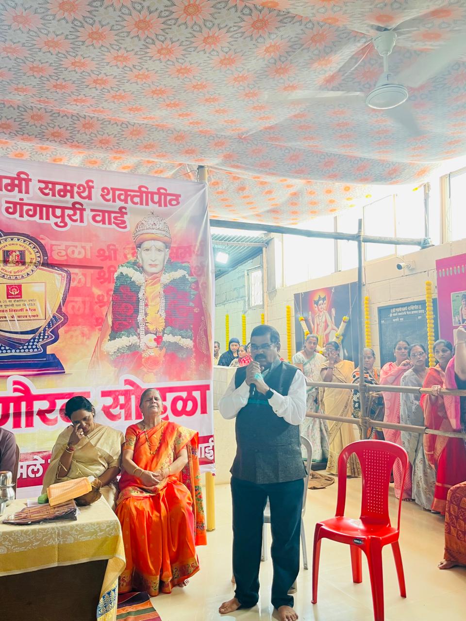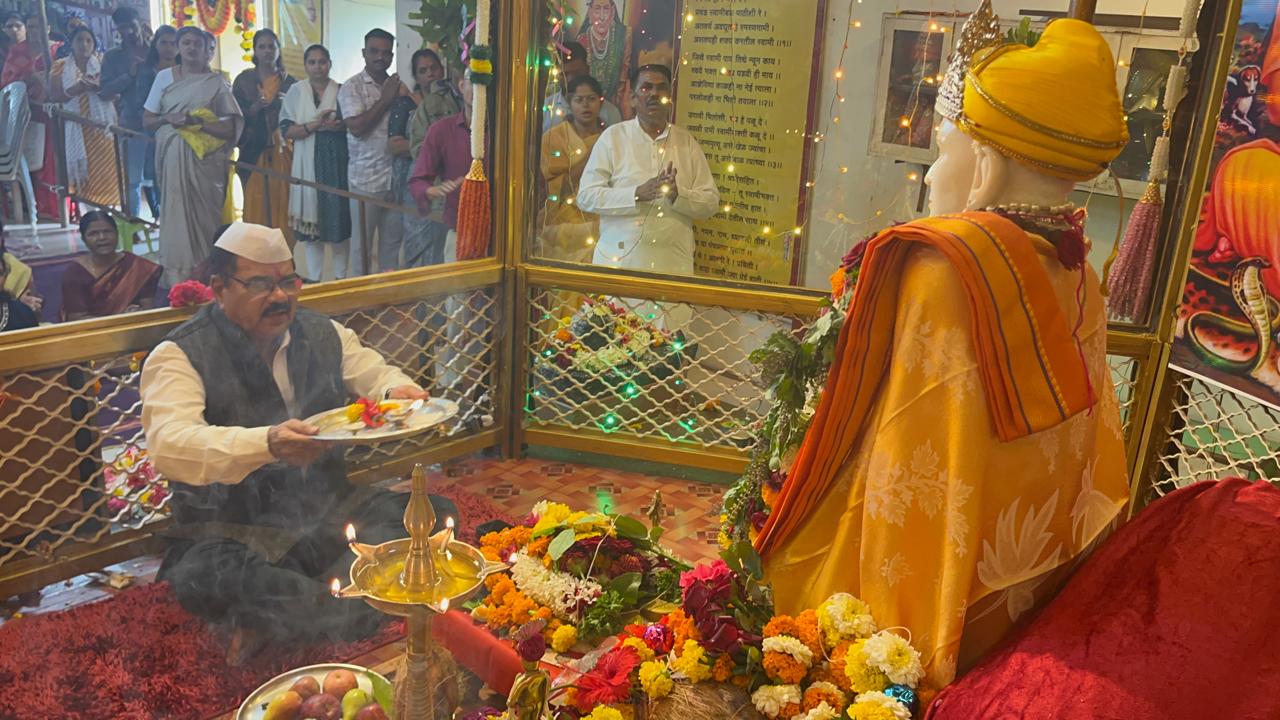 श्री स्वामी समर्थ शक्तीपीठ, वाई येथील गुरुपौर्णिमा कार्यक्रमात स्वामींची आरती करताना दामले फाउंडेशचे संस्थापक श्री. माधव दामले