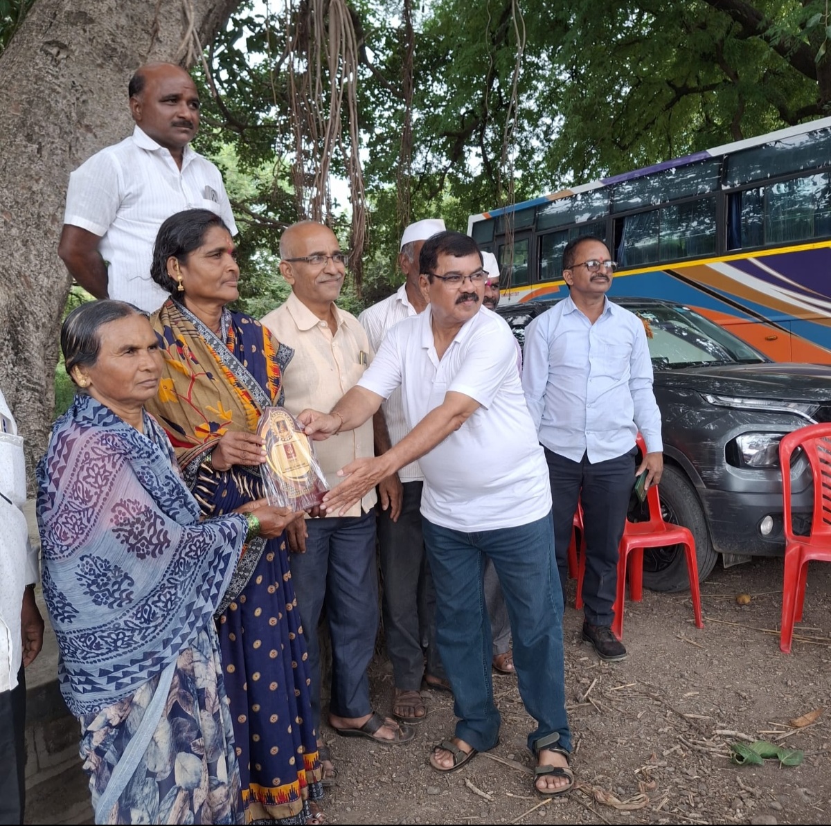 कवठे येथील ग्रामस्थांचा सन्मान करताना दामले फाउंडेशनचे संस्थापक श्री माधव दामले