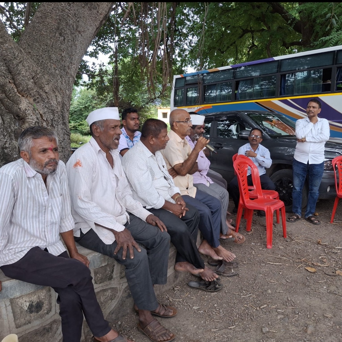 मैत्री क्लबच्या कवठे येथील ट्रिपमध्ये सभासदां सोबत गप्पा गोष्टी करताना ग्रामस्थ